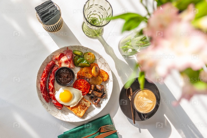 Легкий завтрак в ресторане с чашечкой кофе