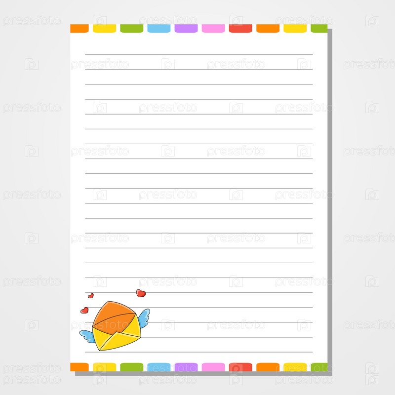 Шаблон листа для блокнота, блокнота, дневника. Линованной бумаги. Симпатичный персонаж. С цветным изображением. мультяшный стиль. Векторная иллюстрация