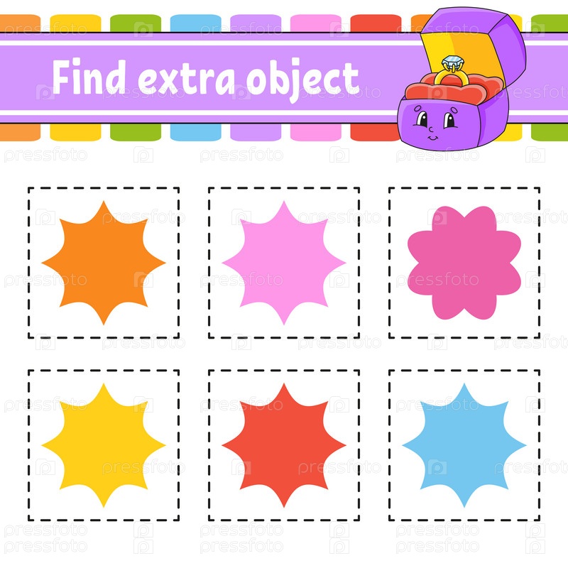 Найдите дополнительный объект. Лист образовательной деятельности для детей и малышей. Игра для детей. Симпатичные персонажи. Векторная иллюстрация