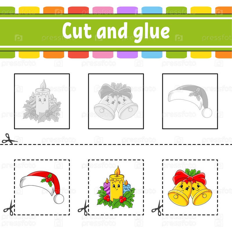 Вырезаем и приклеиваем. Игра для детей. Рабочий лист по развитию образования. Цветная страница активности. мультипликационный персонаж. Векторная иллюстрация