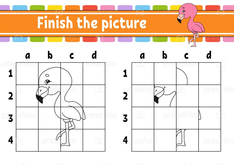 Закончите картинку. Страницы раскраски для детей. Рабочий лист по развитию образования. Игра для детей. Практика почерка. мультипликационный персонаж. Векторная иллюстрация
