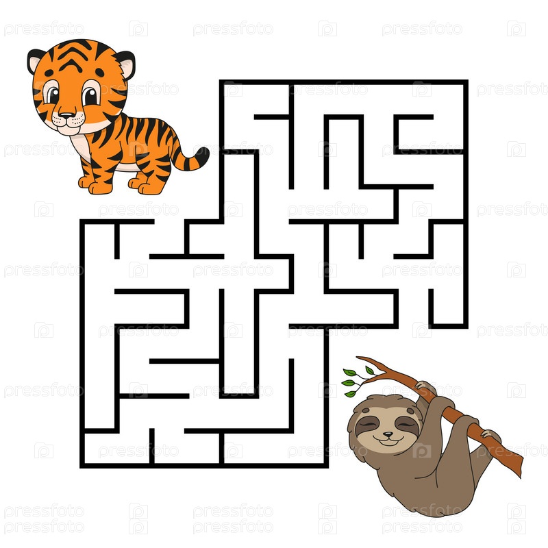Квадратный лабиринт. Игра для детей. Головоломка для детей. Загадка лабиринта. мультипликационный персонаж. Изолированные на белом фоне. Векторная иллюстрация