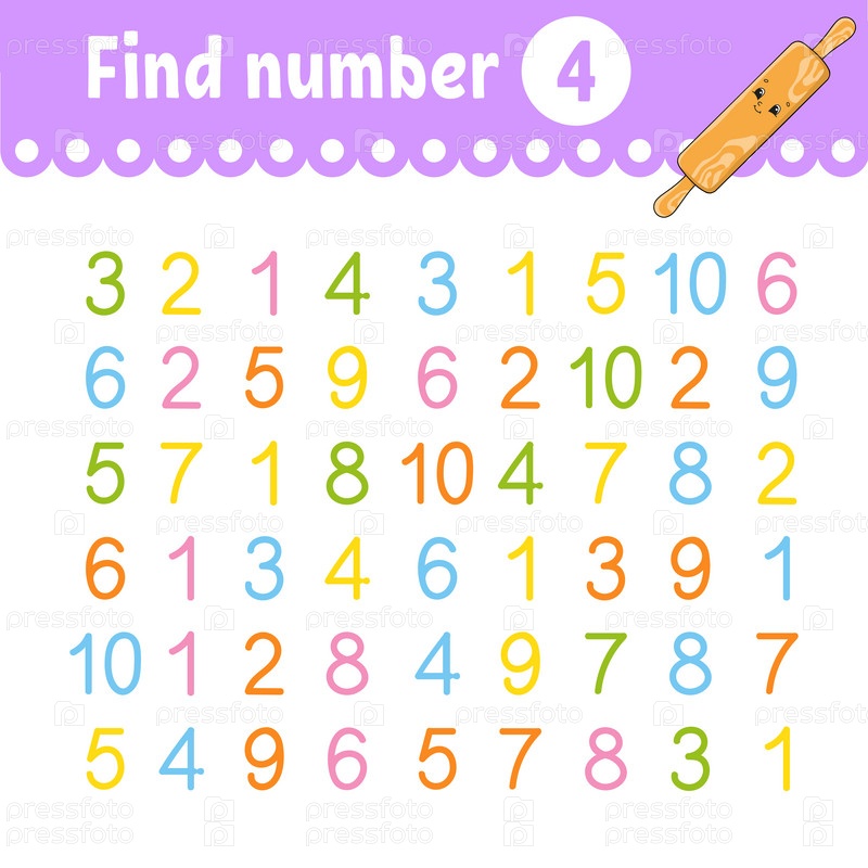 Найдите номер. Рабочий лист по развитию образования. Страница активности с картинками. Игра для детей. Забавный персонаж. мультяшный стиль. Векторная иллюстрация
