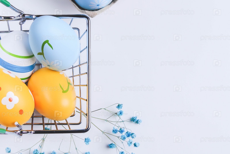 Пасхальные яйца в корзине. Поздравляю с христианским праздником Пасхи
