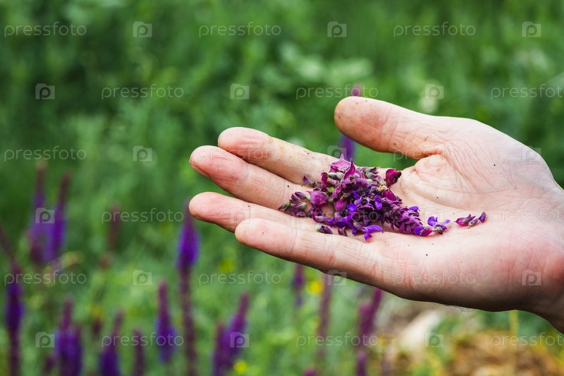 Сбор лекарственных трав. Травник собирает шалфей. Лечение травами