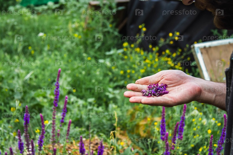 Сбор лекарственных трав. Травник собирает шалфей. Лечение травами