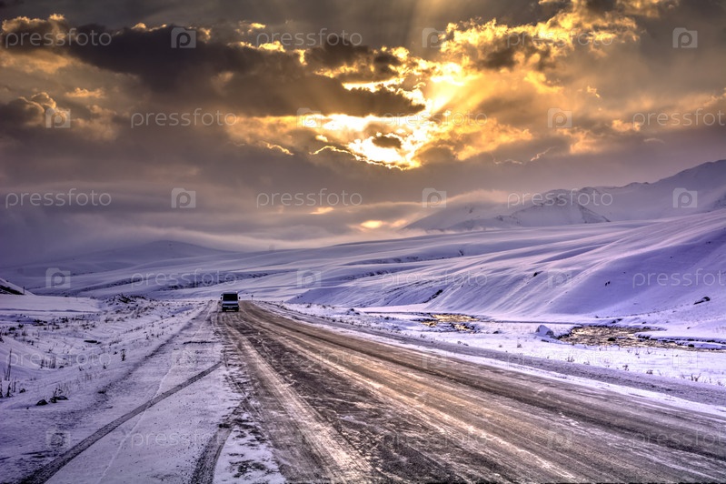 Восход солнца в Суусамырской долине, Кыргызстан, выборочный фокус