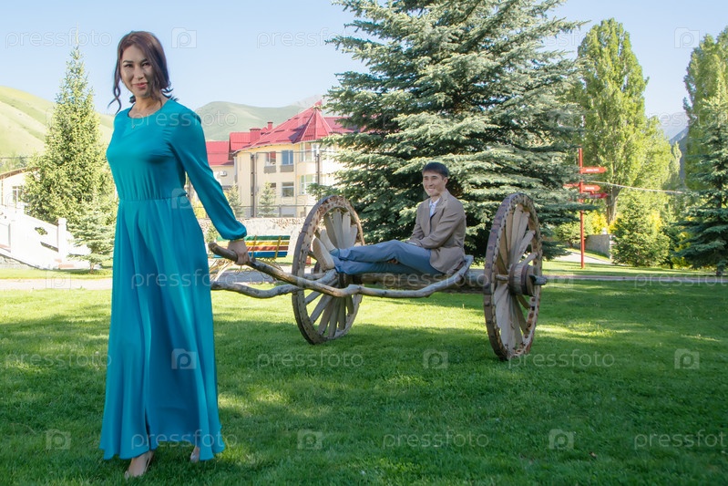 Девушка и парень азиатской национальности киргизы на природе