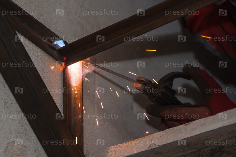 Процесс сварки металлических элементов вспышками света и искрами