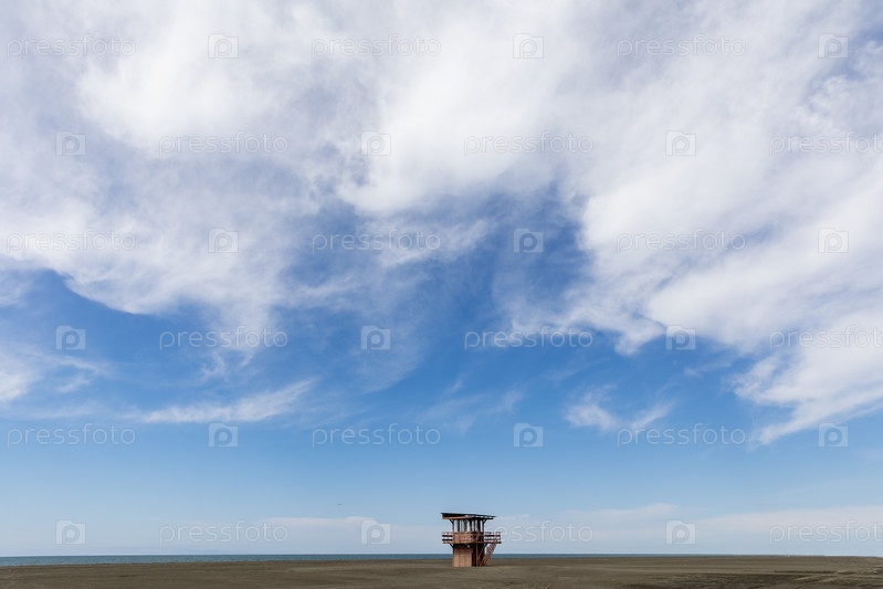 Грузия. Поти. Спасательная башня на пустынном морском пляже. Джорджия. Поти. Башня спасателя на необитаемом морском пляже