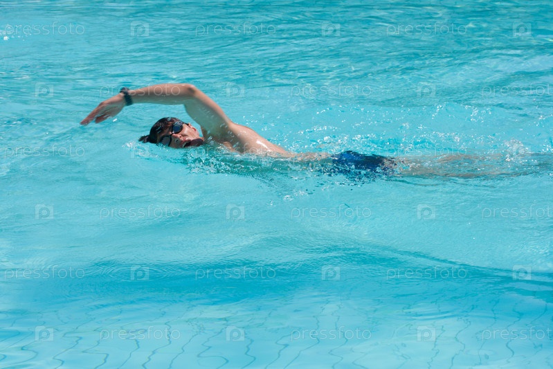 Молодой человек плывет кролем
