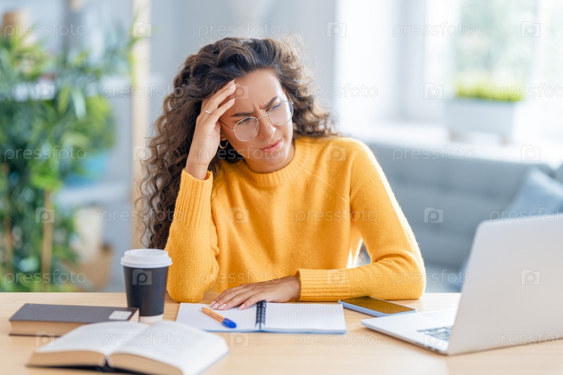 Женщина работает дома за ноутбуком
