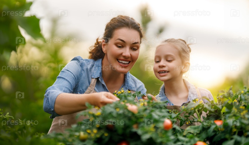 Мать и дочь занимаются садоводством на заднем дворе