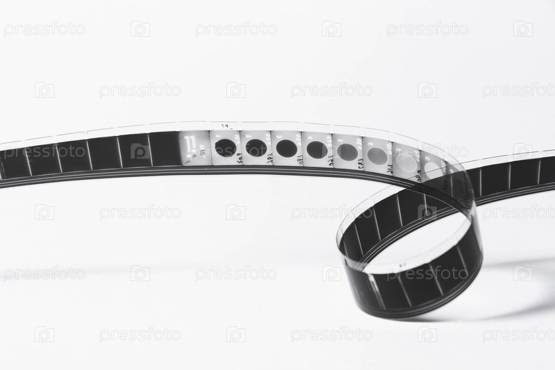 Винтажная кинопленка изолирована на белом фоне. Кинокадры на пленке