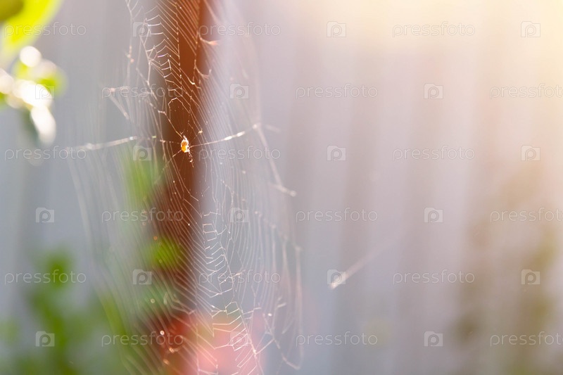 Паутина в ярком солнечном свете. Насекомые на рассвете. Опасные пауки на охоте