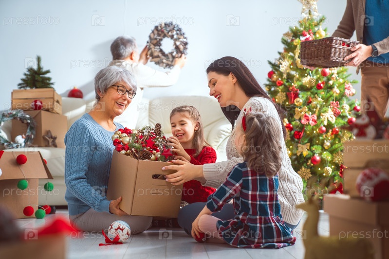 Семья готовится к Рождеству