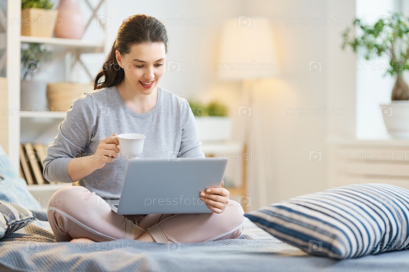 Женщина работает за ноутбуком