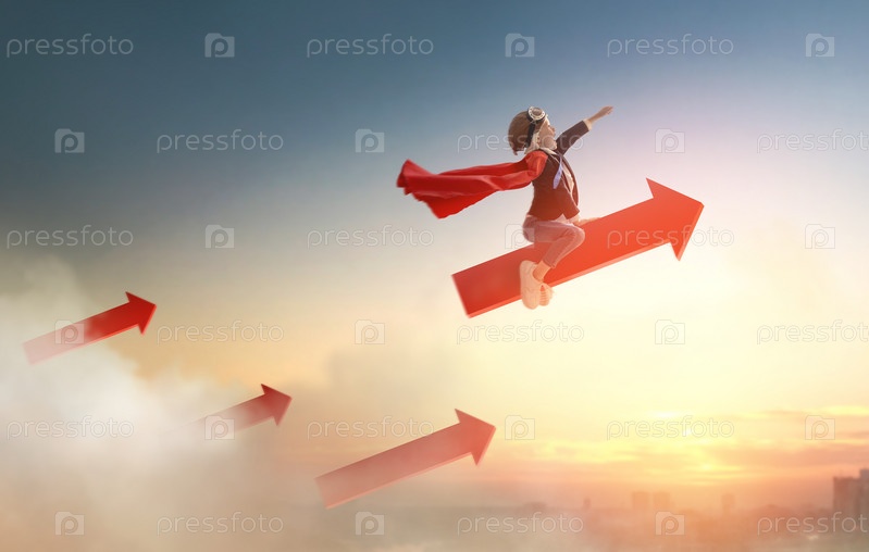 Ребенок-бизнесмен на фоне заката