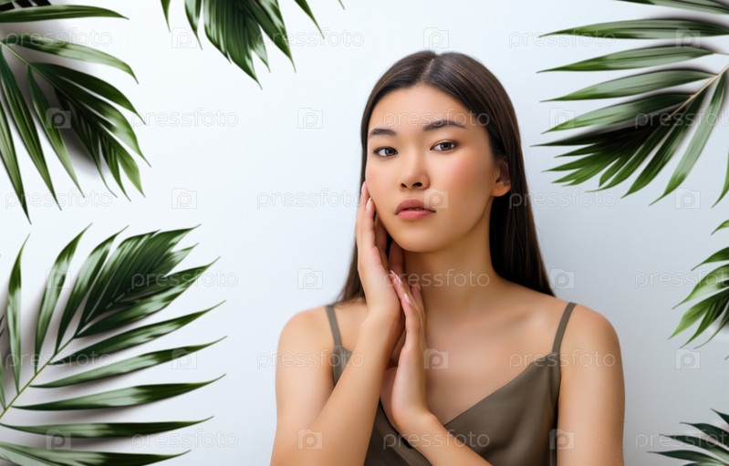 Азиатская девушка на сером фоне