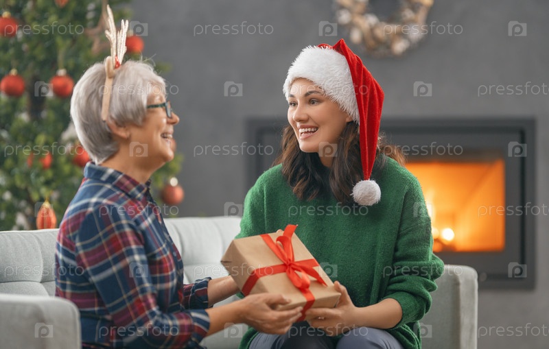 Семья празднует Рождество