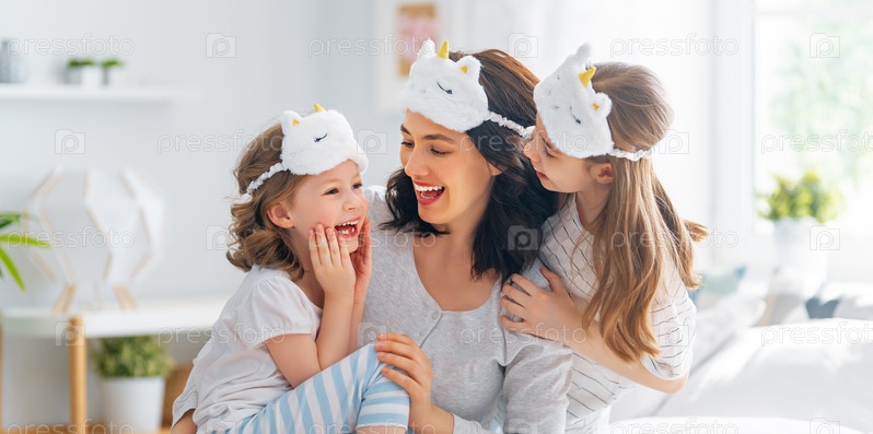 Девочки и их мама наслаждаются солнечным утром