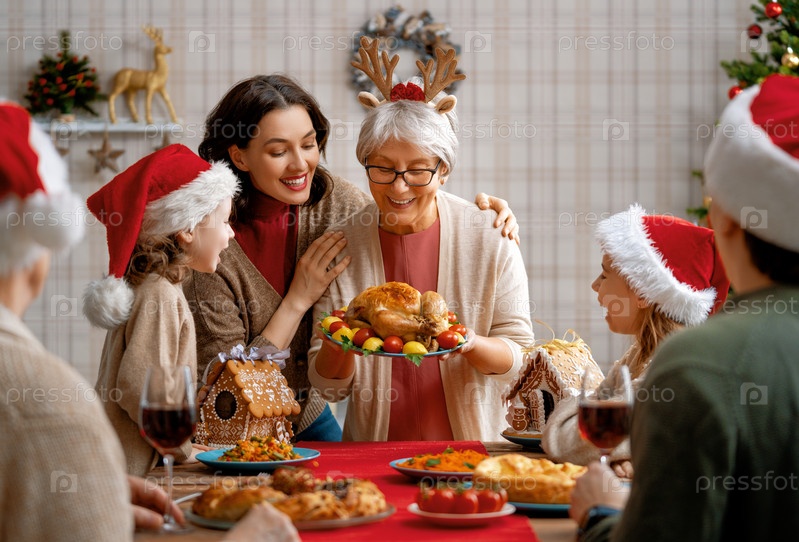 Семья празднует Рождество