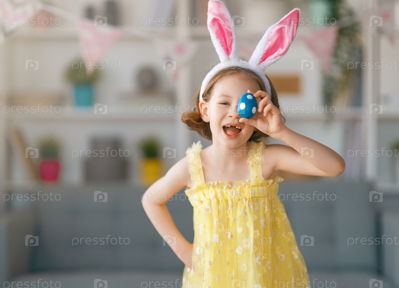 Ребенок с пасхальными яйцами красит