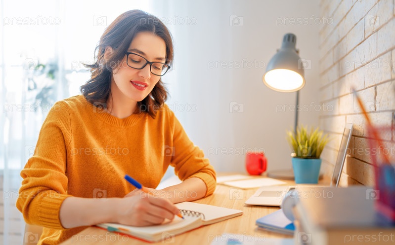 Женщина работает дома за ноутбуком