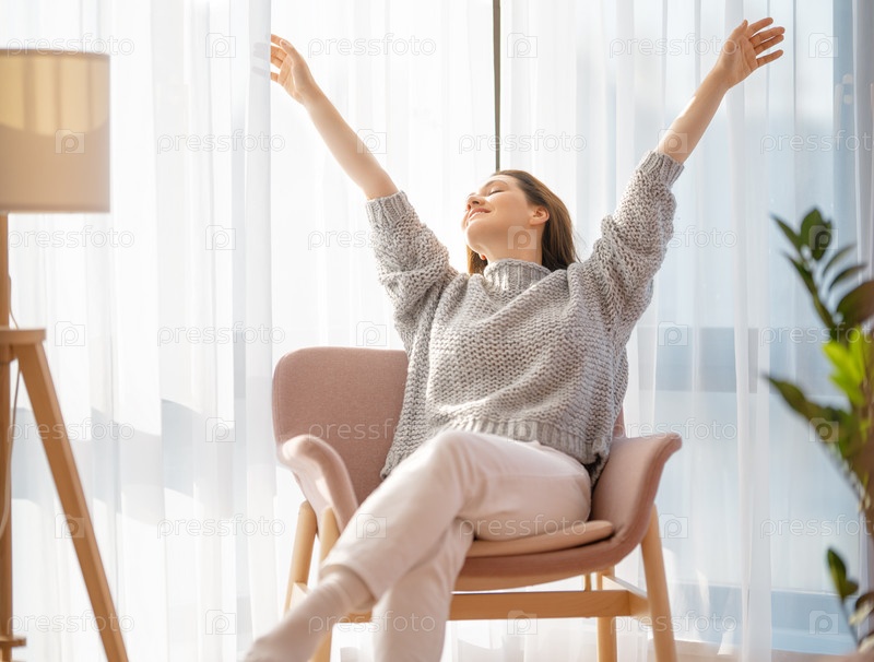 Женщина отдыхает дома в кресле