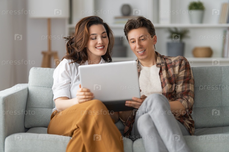 Молодая пара пользуется ноутбуком