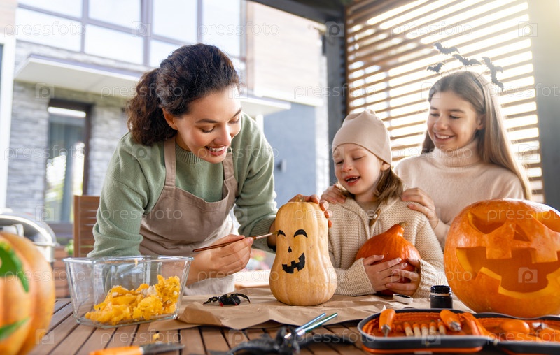Семья готовится к Хэллоуину