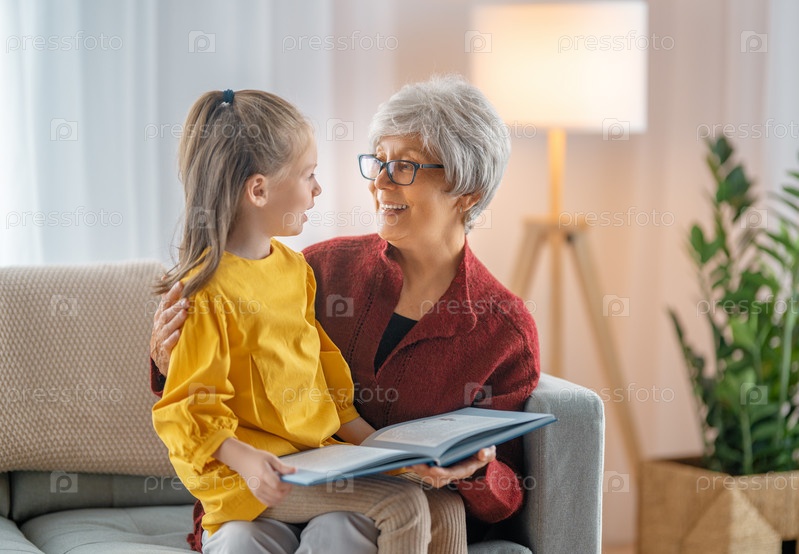 Бабушка читает книгу внучке