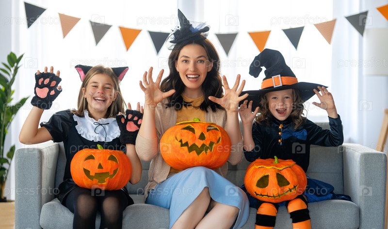 Счастливая семья празднует Хэллоуин