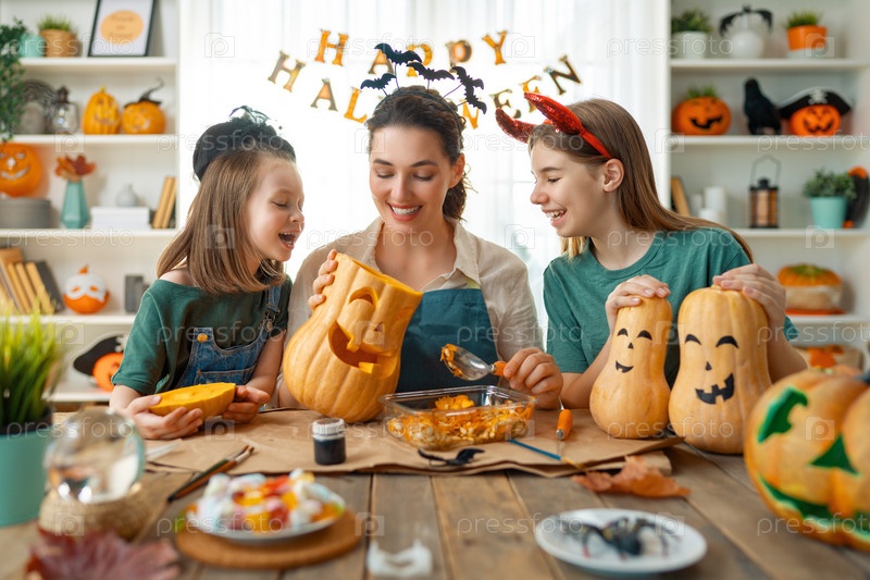 Семья готовится к Хэллоуину