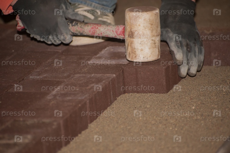 Мужчина печенье укладывает тротуарную плитку