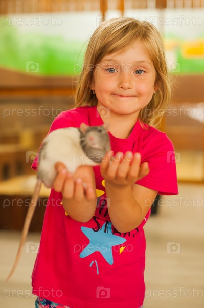 Маленькая девочка держит в руках крысу