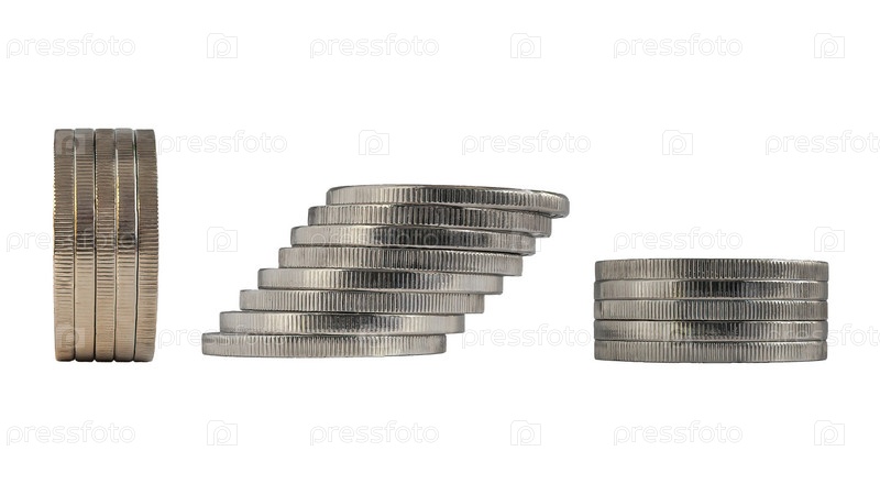Изолированное изображение металлических монет, сложенных друг на друга по-разному. Шаблон для дизайнеров по финансам и бизнесу