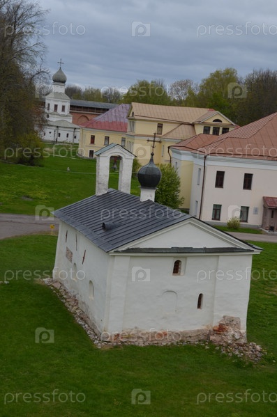 Церковь Андрея Стратилата не действующий православный храм XVXVII веков в Великом Новгороде, расположенный в юго-восточной части новгородского Кремля. на заднем плане церковь Покрова Пресвятой Богородицы и различные тройки музейного комплекса