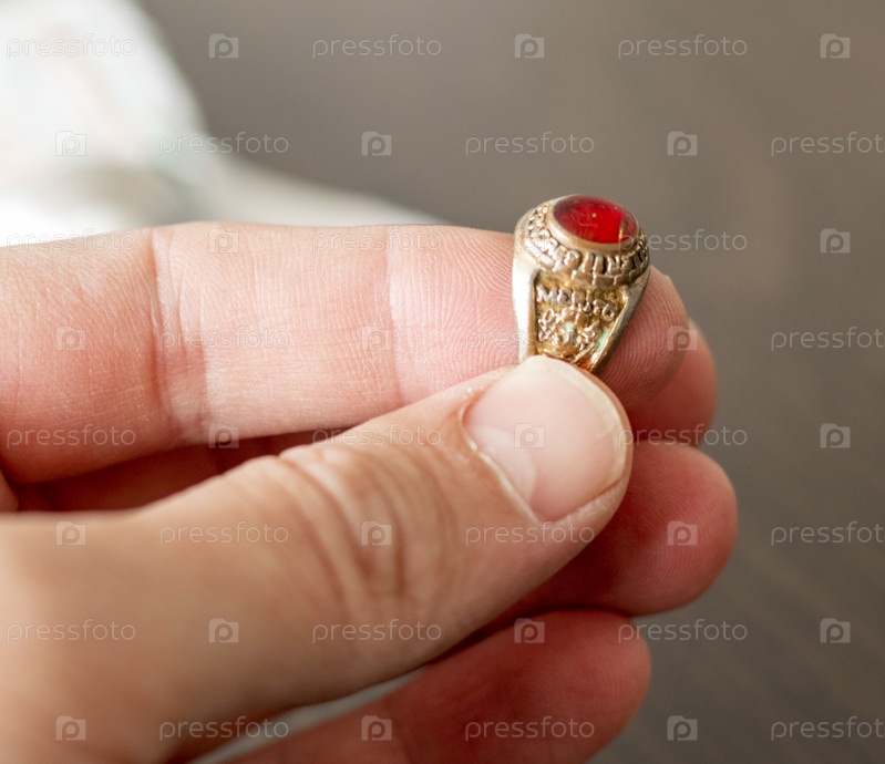 Крупный план старого винтажного кольца с латинскими словами. Ремесло