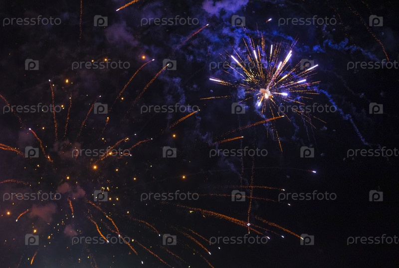 Выстрел фейерверка в ночном небе. Торжества