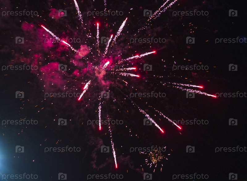 Выстрел фейерверка в ночном небе. Праздник