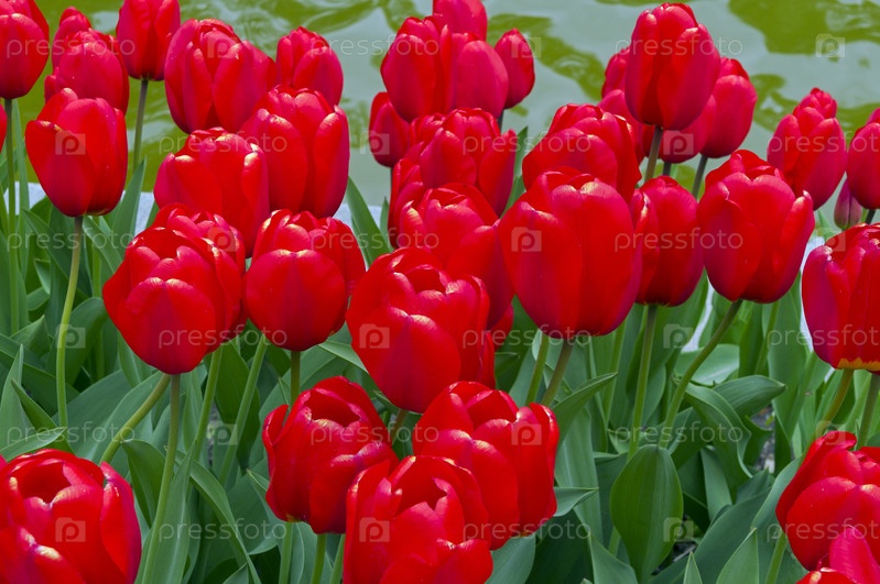 Яркие красные тюльпаны как фон
