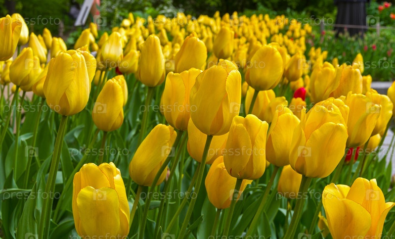 Яркие желтые тюльпаны как фон