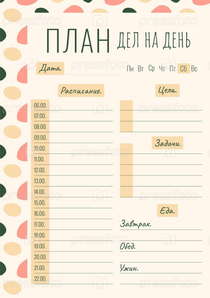 Шаблон ежедневного планера дел под формат листа А4 с абстрактным узором