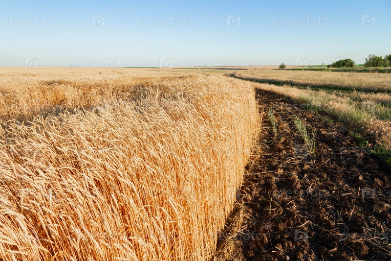 Новый урожай пшеницы. Колосья пшеницы на солнце. Поле перед сбором урожая