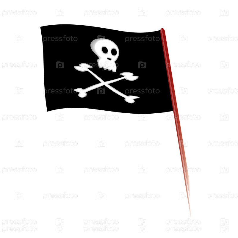 Черный пиратский флаг с черепом и костями