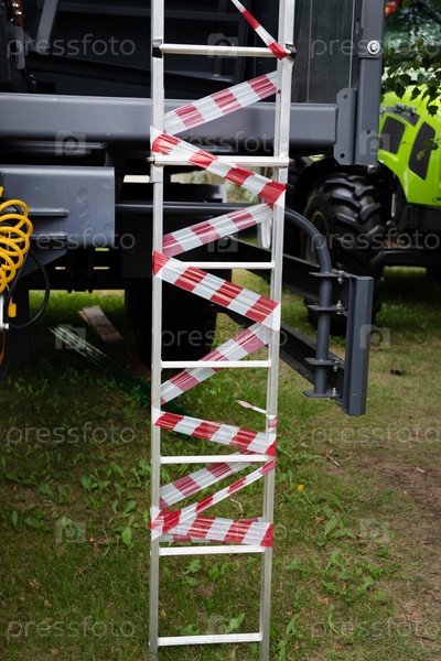 Отремонтированная каменная лестница перекрыта большим количеством запрещающих лент