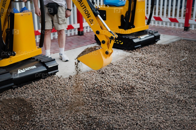 Мини-экскаватор на строительной площадке. Компактная строительная техника для земляных работ