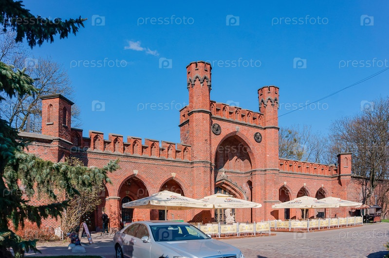 Калининград, Россия - 2019, 13 апреля: Музей янтаря. Дон Тауэр. Росгартенские ворота