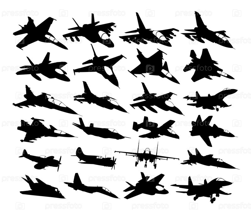 Набор силуэтов военных истребителей